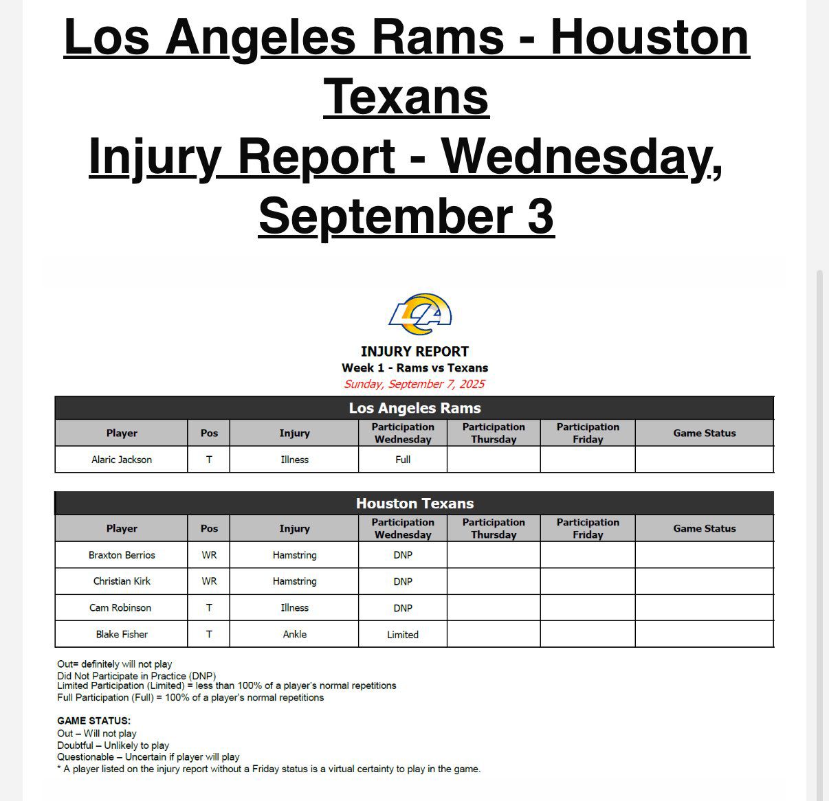 — Los Angeles Rams (@RamsNFL) August 31, 2025