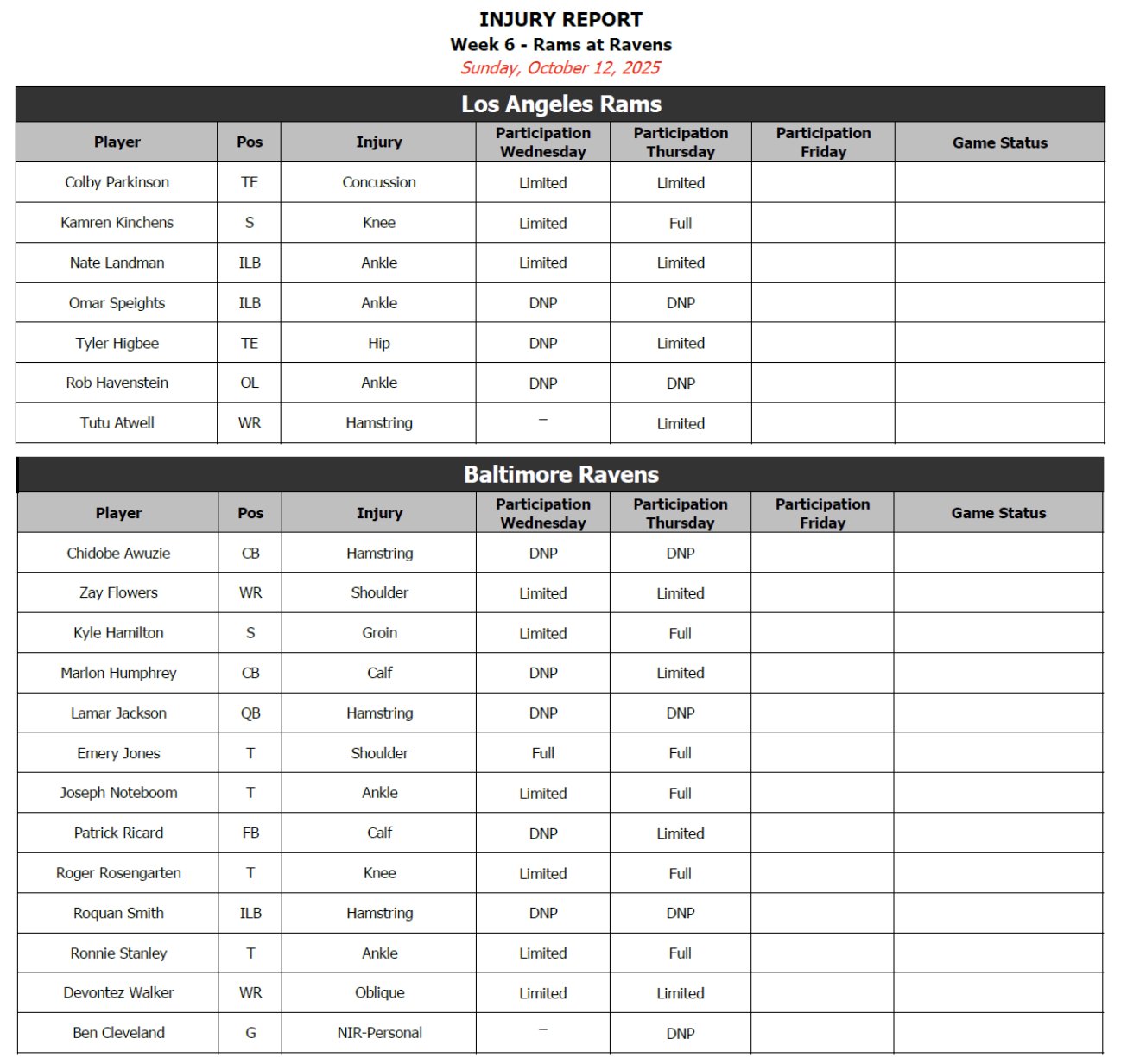 Injury Report
