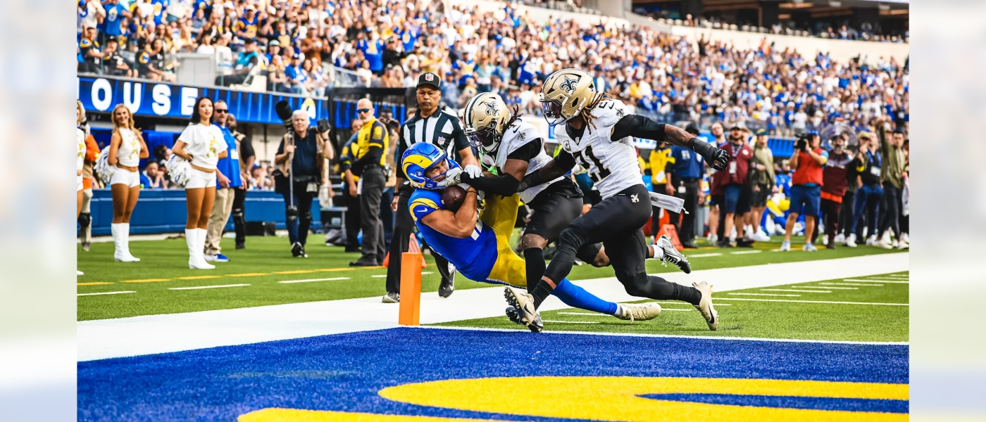 Die Rams Defense zeigte zuerst, wer den Platz dominiert und schickte die Saints direkt wieder an die Seitenline. Matthew Stafford betrat mit seiner Unit das Spielfeld. Zurück von seiner Verletzung bekam Puka Nacua den ersten Pass von Stafford für ein neues First Down und auch der zweite Pass landete in seinen Händen. Nach weiteren Pässen auf diverse Passempfänger und einigen Läufen von Kyren Williams durfte TE Tyler Higbee den ersten Touchdown des Abends durch einen 1 Yard Pass fangen. Nach dem Sieg der World Series der Los Angeles Dodgers feierte Higbee den TD mit einem Baseball-Jubel und der Signature Celebration der Dodgers.