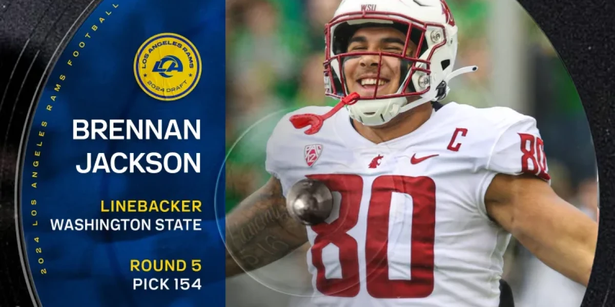 Der erste Pick an dritten Draft Tag erfolgte in Runde fünf, damit wurde EDGE Brennan Jackson ausgewählt. In fast allen Scouting, Berichten und Draftboards wird er als EDGE gelistet, die Rams gaben ihn bei der Bekanntgabe als Linebacker an. Ob er als Linebacker bei den Rams spielen wird, wird sich zeigen. Aufgewachsen ist Brennan in Südkalifornien und begann im Alter von sieben Jahren Football zu spielen.